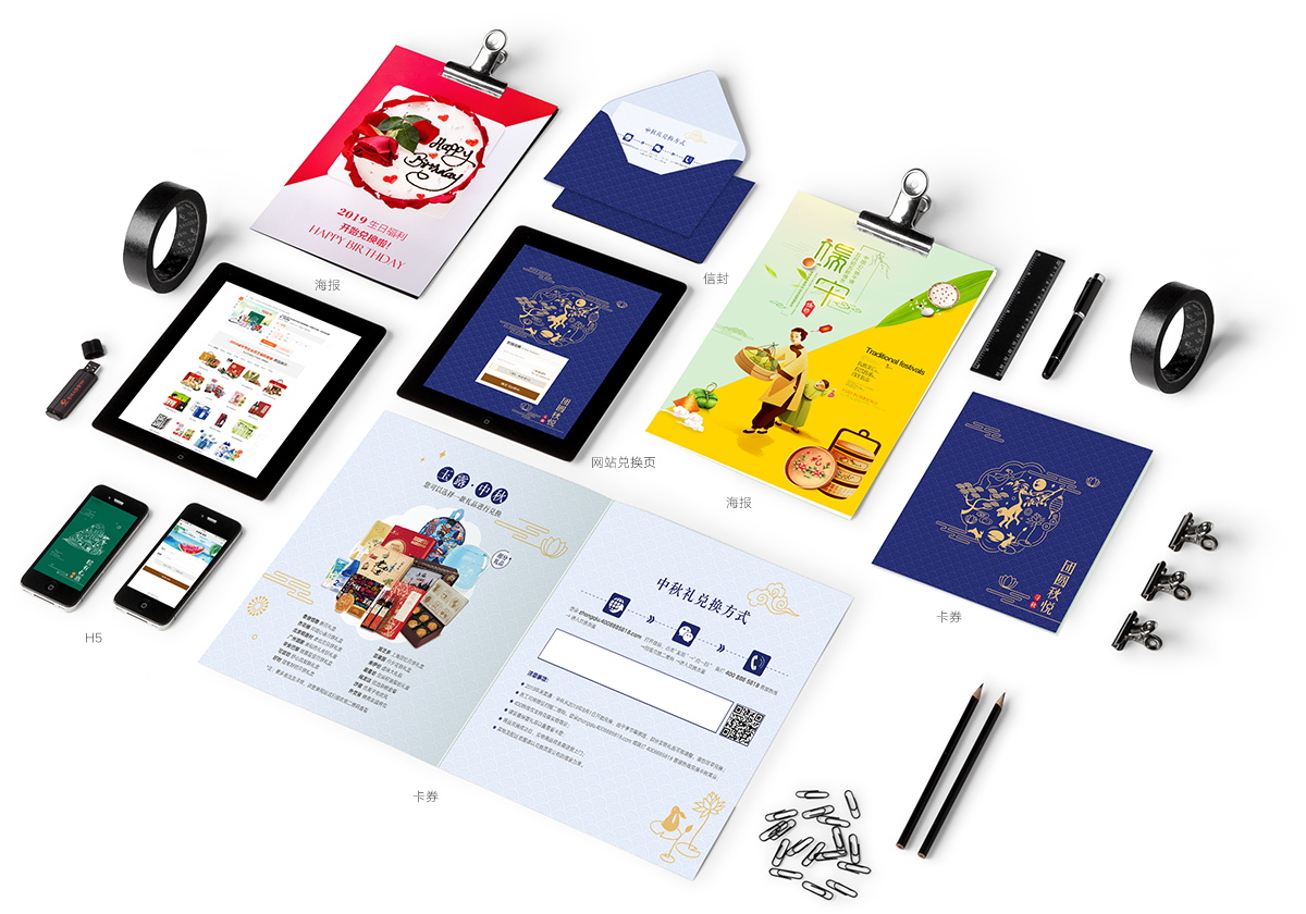 企业可指定商品或使用自有供应商商品 / 卡券、信封、网站兑换页、H5、海报等 / 线上线下活动、内宣方案